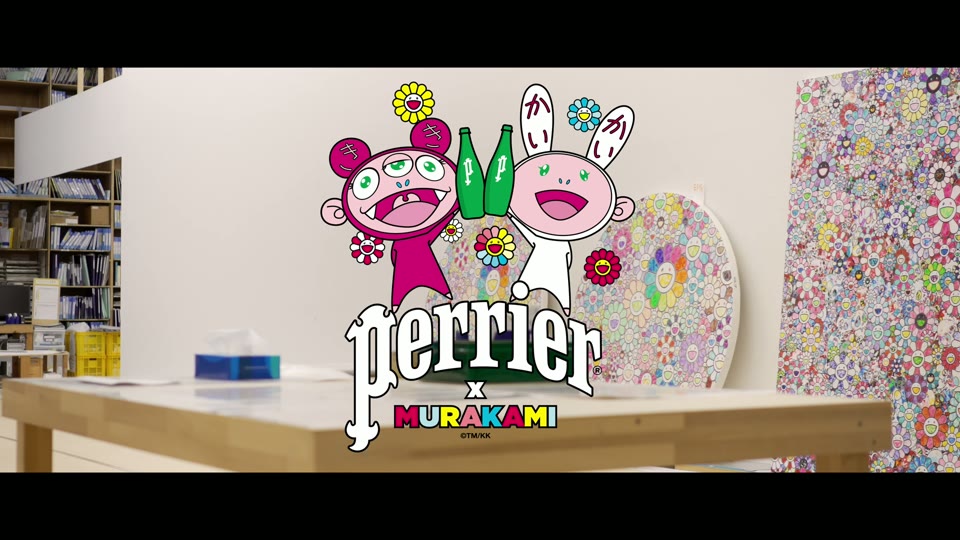 Mickaël Royer a réalisé une vidéo brand content autour de la collaboration entre Perrier et Murakami pour réaliser une édition limitée exclusive de bouteilles mettant en scène son motif de fleurs souriantes emblématiques et ses deux personnages fétiches Kaikai et Kiki, apportant une touche de couleur et de joie aux iconiques bouteilles vertes.