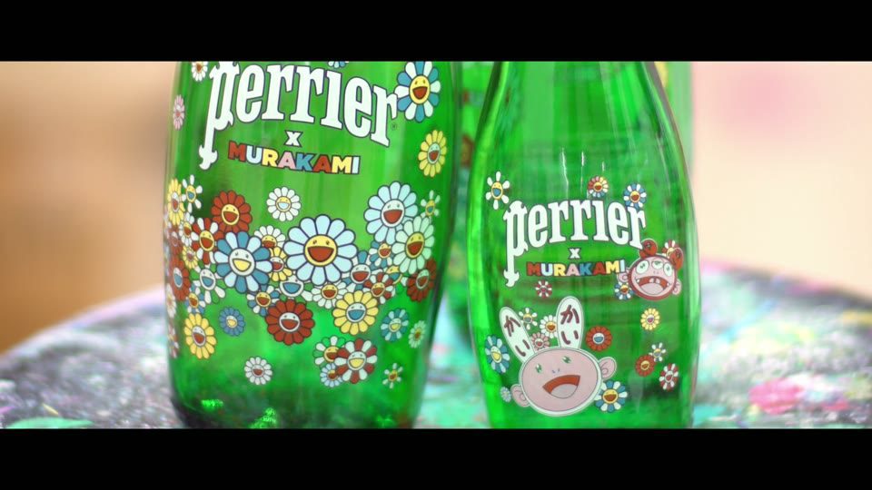 Mickaël Royer a réalisé une vidéo brand content autour de la collaboration entre Perrier et Murakami pour réaliser une édition limitée exclusive de bouteilles mettant en scène son motif de fleurs souriantes emblématiques et ses deux personnages fétiches Kaikai et Kiki, apportant une touche de couleur et de joie aux iconiques bouteilles vertes.