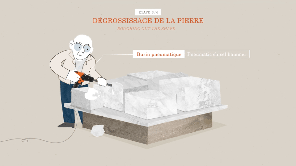 - Un film sur la réalisation d’une sculpture en marbre, depuis l’extraction de la pierre dans la carrière à l’œuvre finale Les Plongeuses d’Ipoustéguy