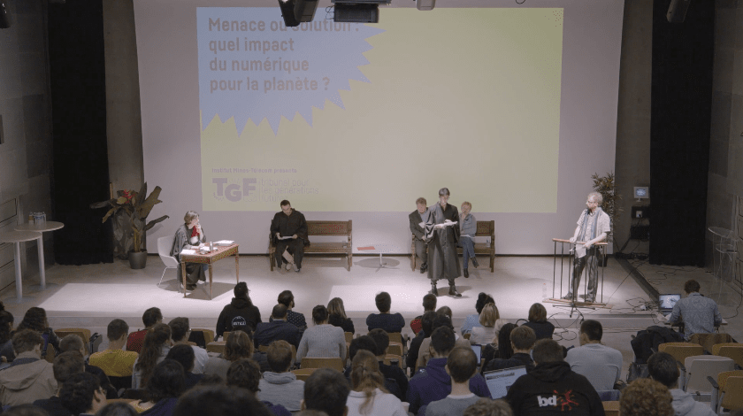 Pour l’Institut des Mines Télécom, nous avons réalisé une captation en direct lors de l’événement « Tribunal pour les générations futures » cet exercice grandeur nature avait comme thème l’impact du numérique sur notre planète.